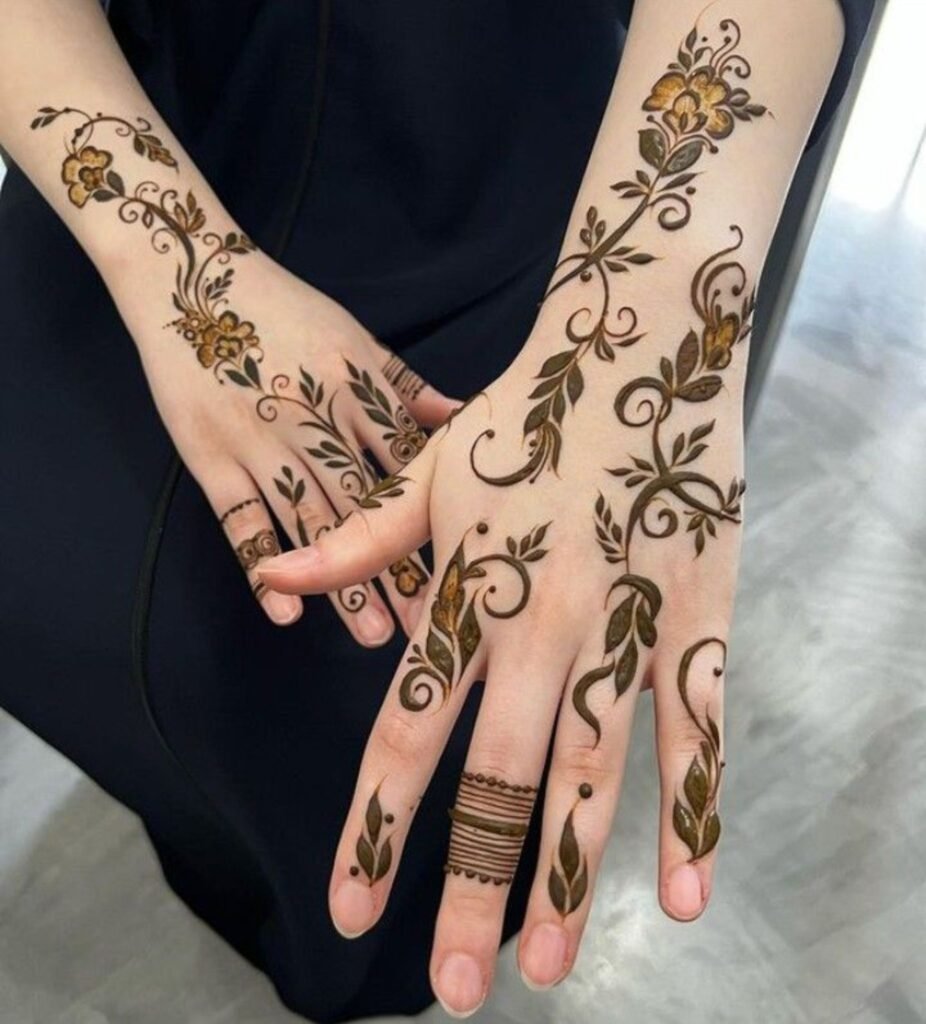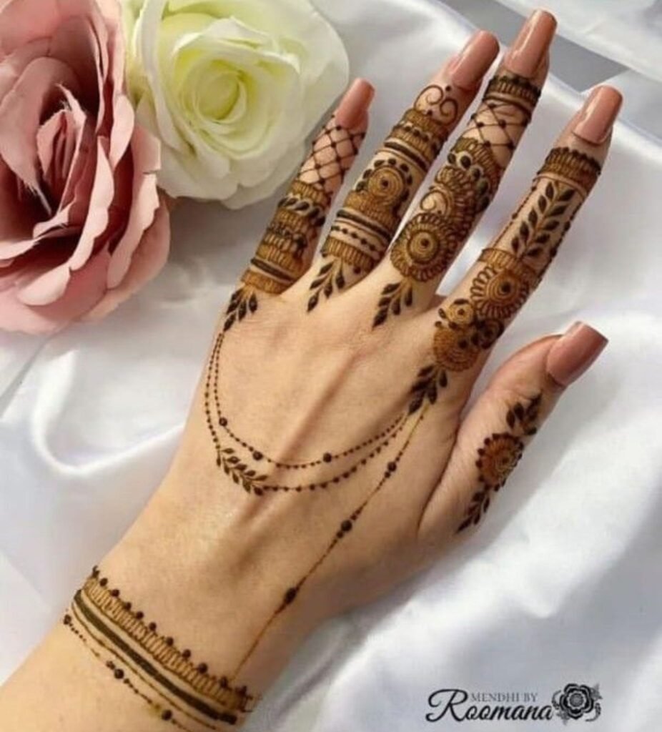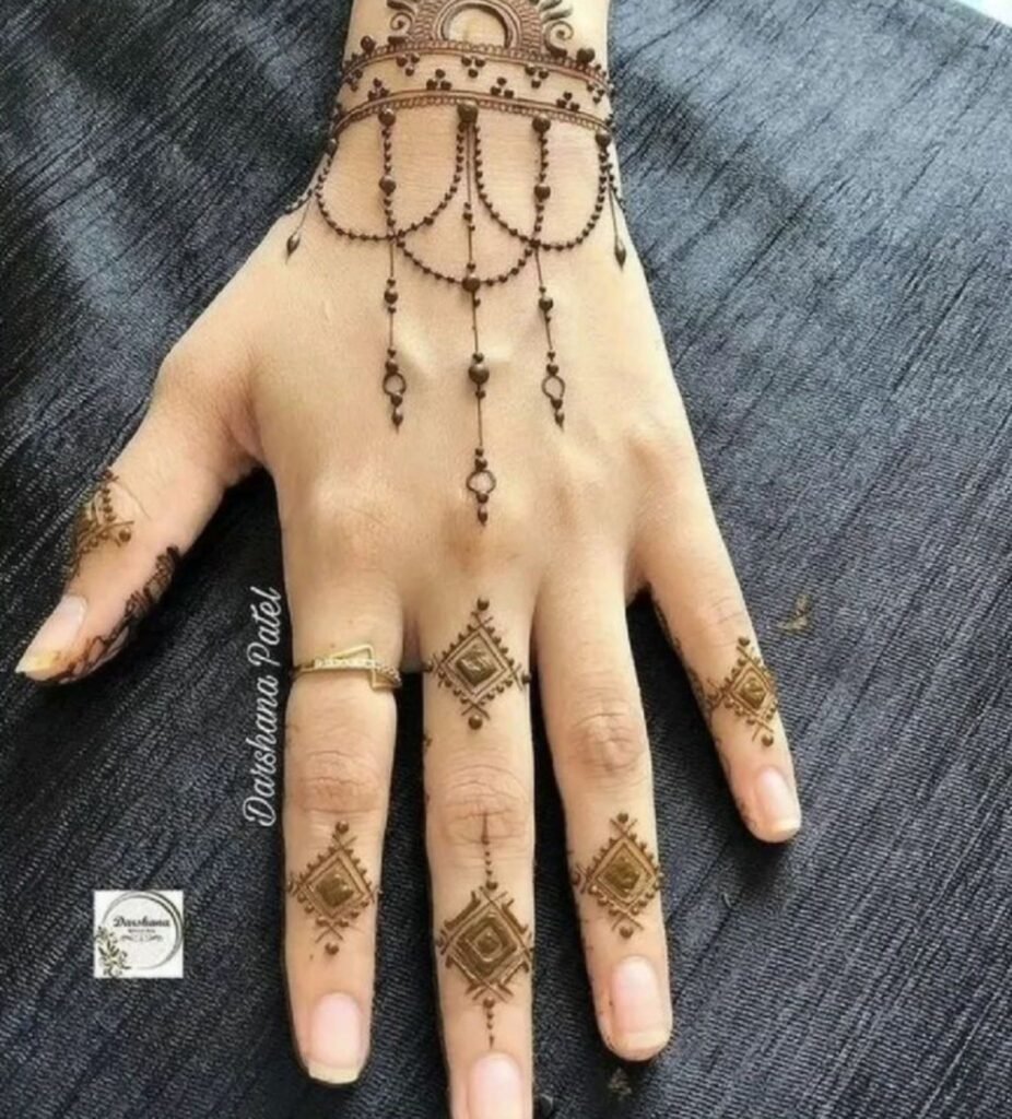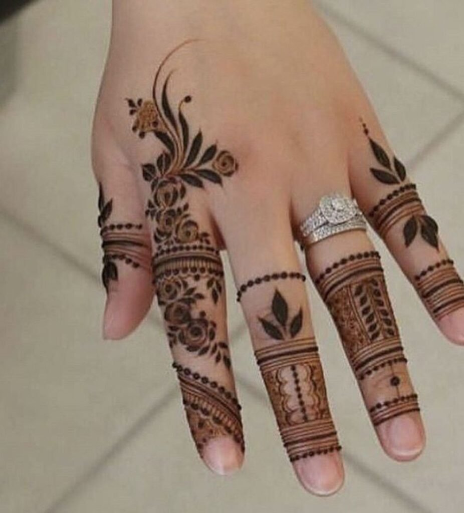 - Add a henna ring motif: A simple band style design on the finger looks like a custom piece of jewelry.
