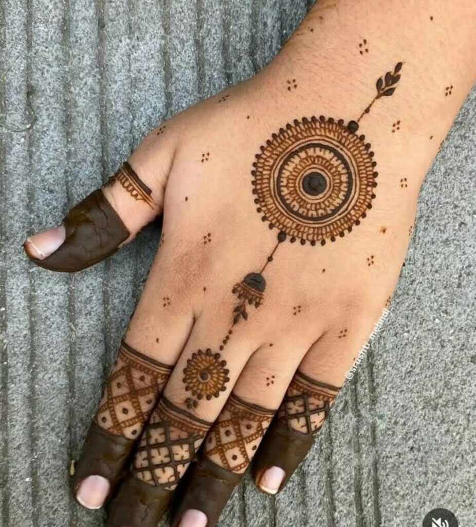 4. Minimalist Geometric Circle Mehndi Perfect for Bridesmaids & Everyday Elegance
