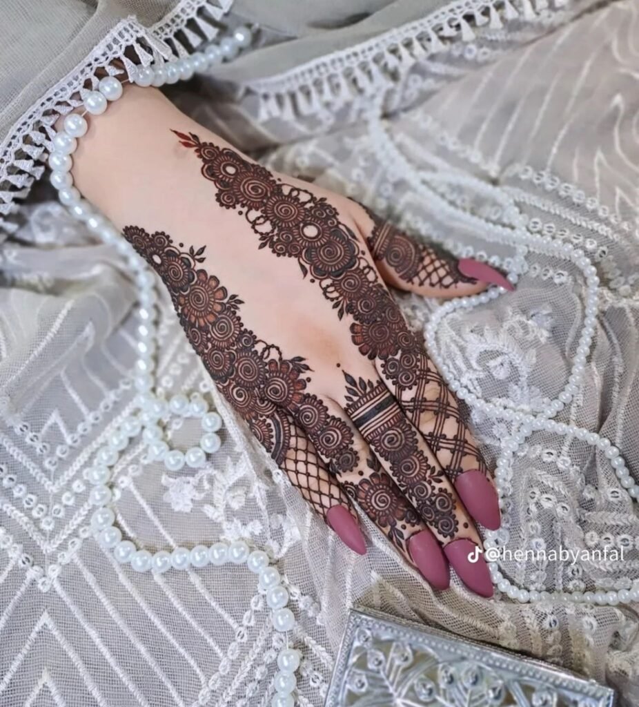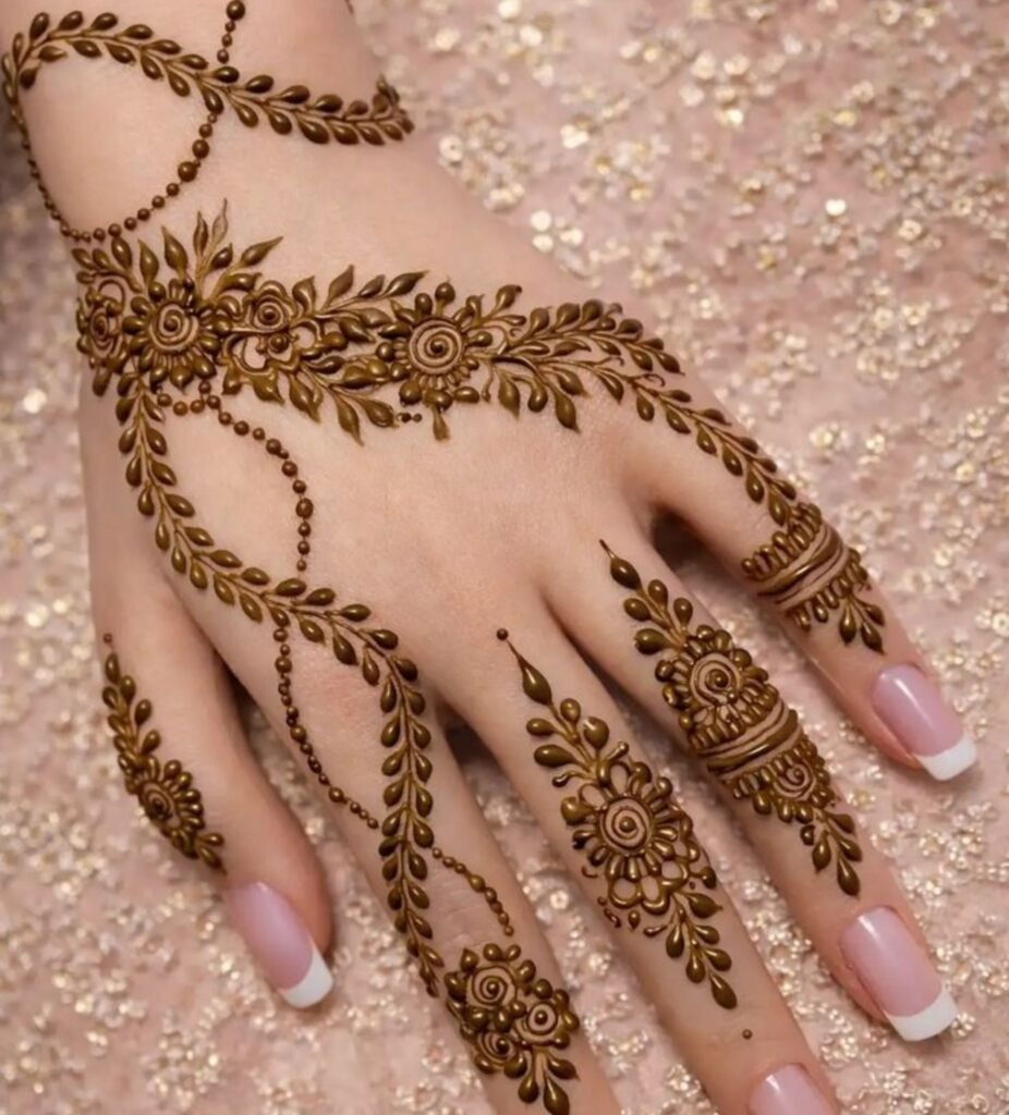 This style pairs exceptionally well with sleek, contemporary bridal wear and is the go-to choice for those who want henna that photographs like fine art.